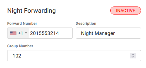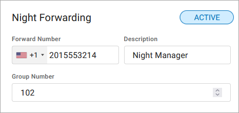 Group routes can be edited while an auto-attendant is live, which means you can update the Night Forwarding phone number, log users in or out of a group, and change any other settings within the route as needed. To edit any other route, see Edit an Auto-Attendant.
